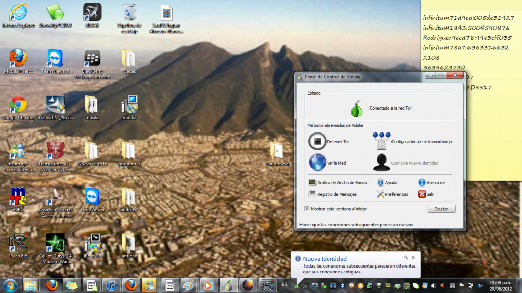 Lo que tenemos que hacer es desconectar IRcap ir al programa de Tor y damos donde dice Nueva Identidad esto es para que nos cambie de nuevo nuestra identidad ya echo esto volvemos a conectar.